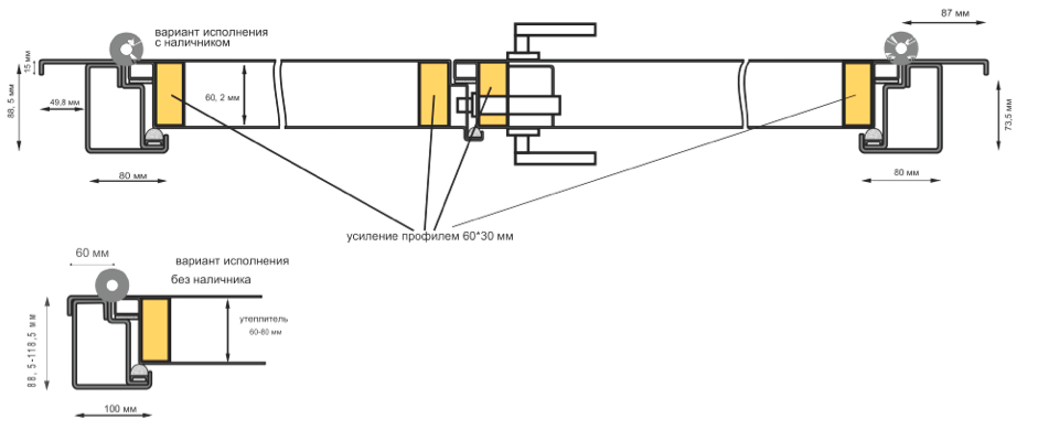 Размеры ворот даны под толщину уплотнителя полотна 60 мм